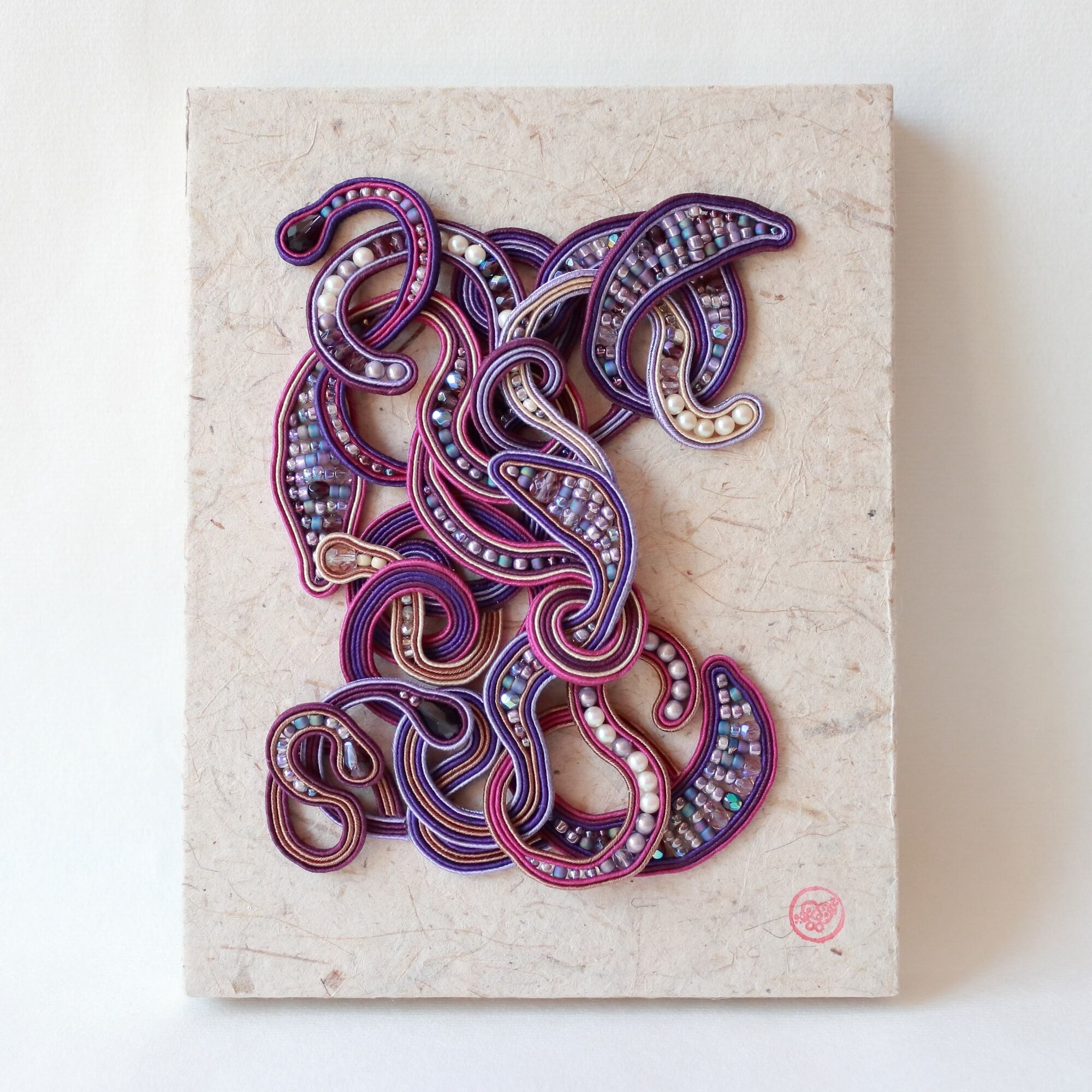 紐を縫う技法(ソウタシエ)をはじめて8年目。