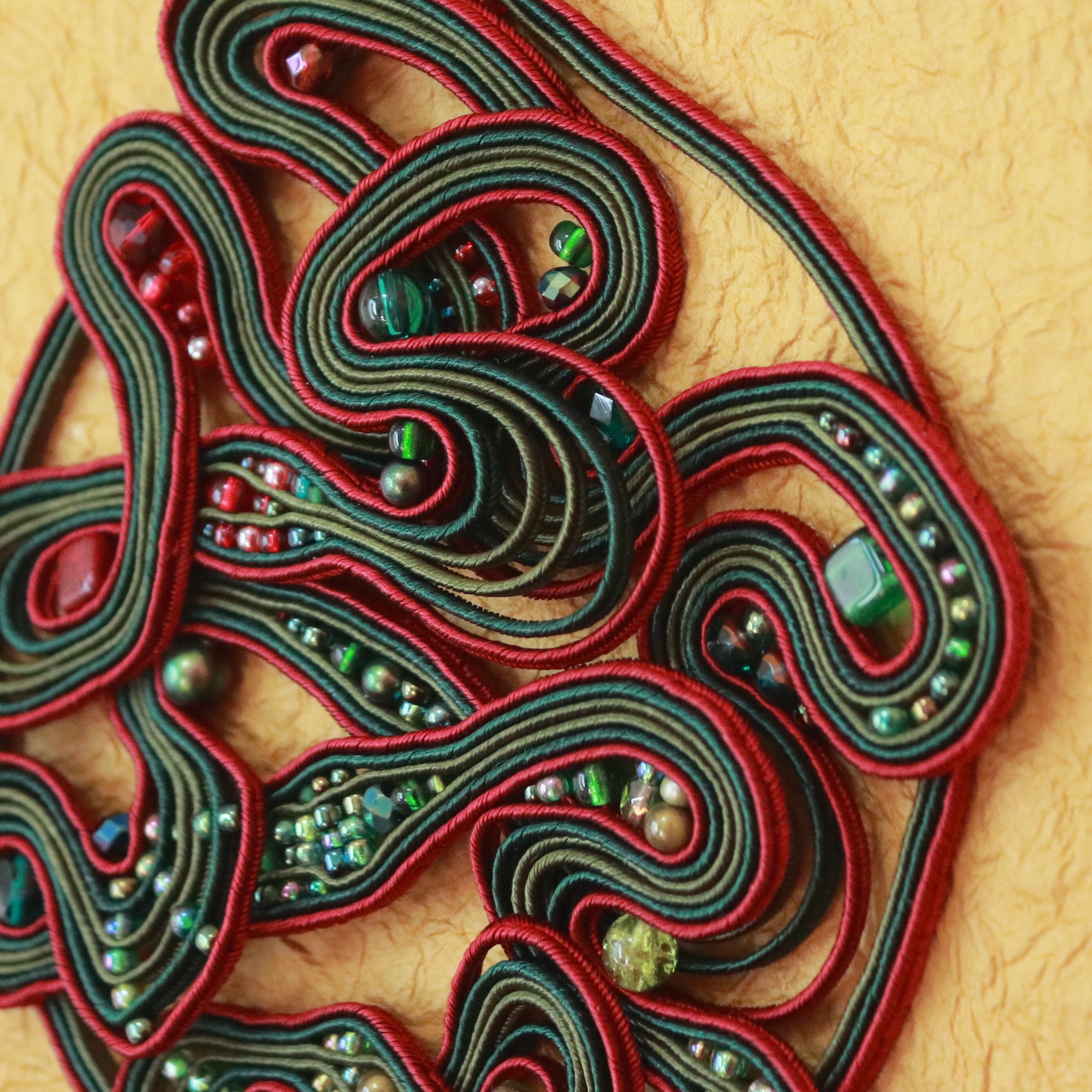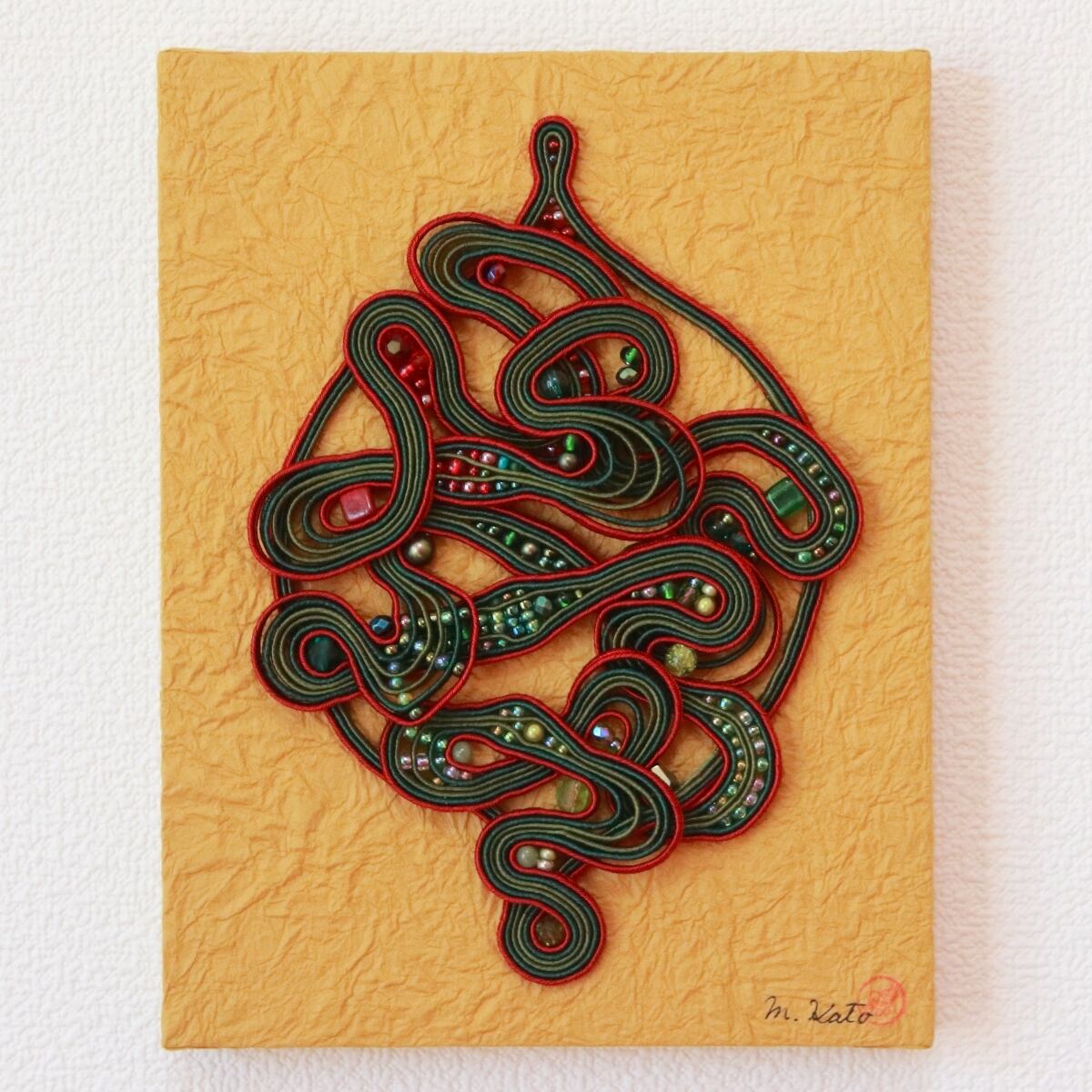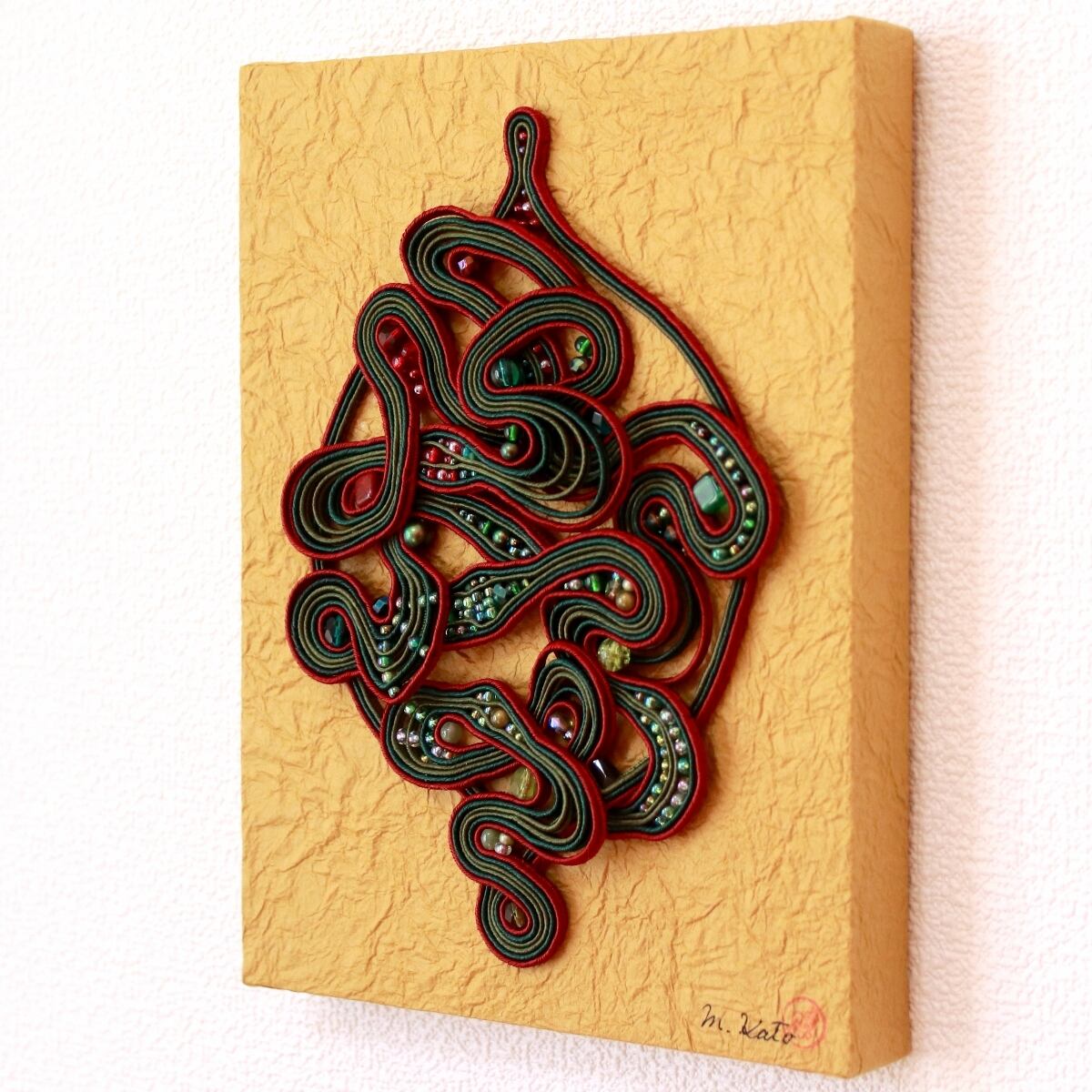 素材 レーヨン製コード、ビーズ、和紙、木製パネル