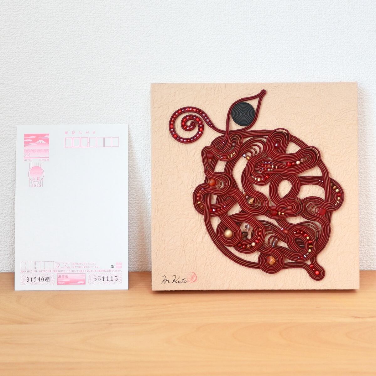 素材 レーヨン製コード、ビーズ、和紙、木製パネル