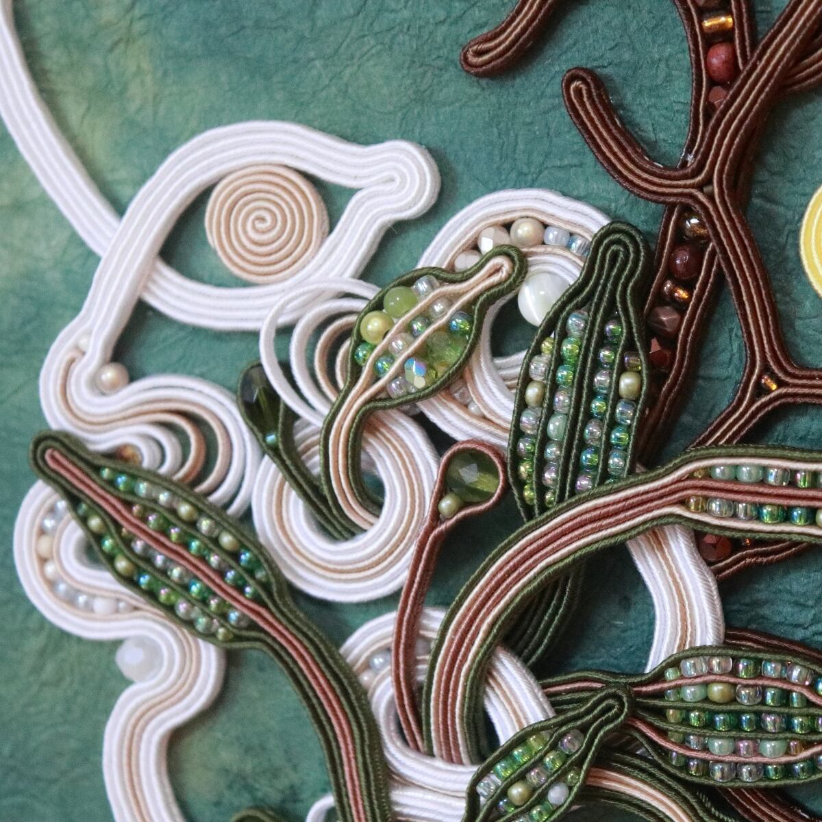 素材 レーヨン製コード、ビーズ、和紙、木製パネル