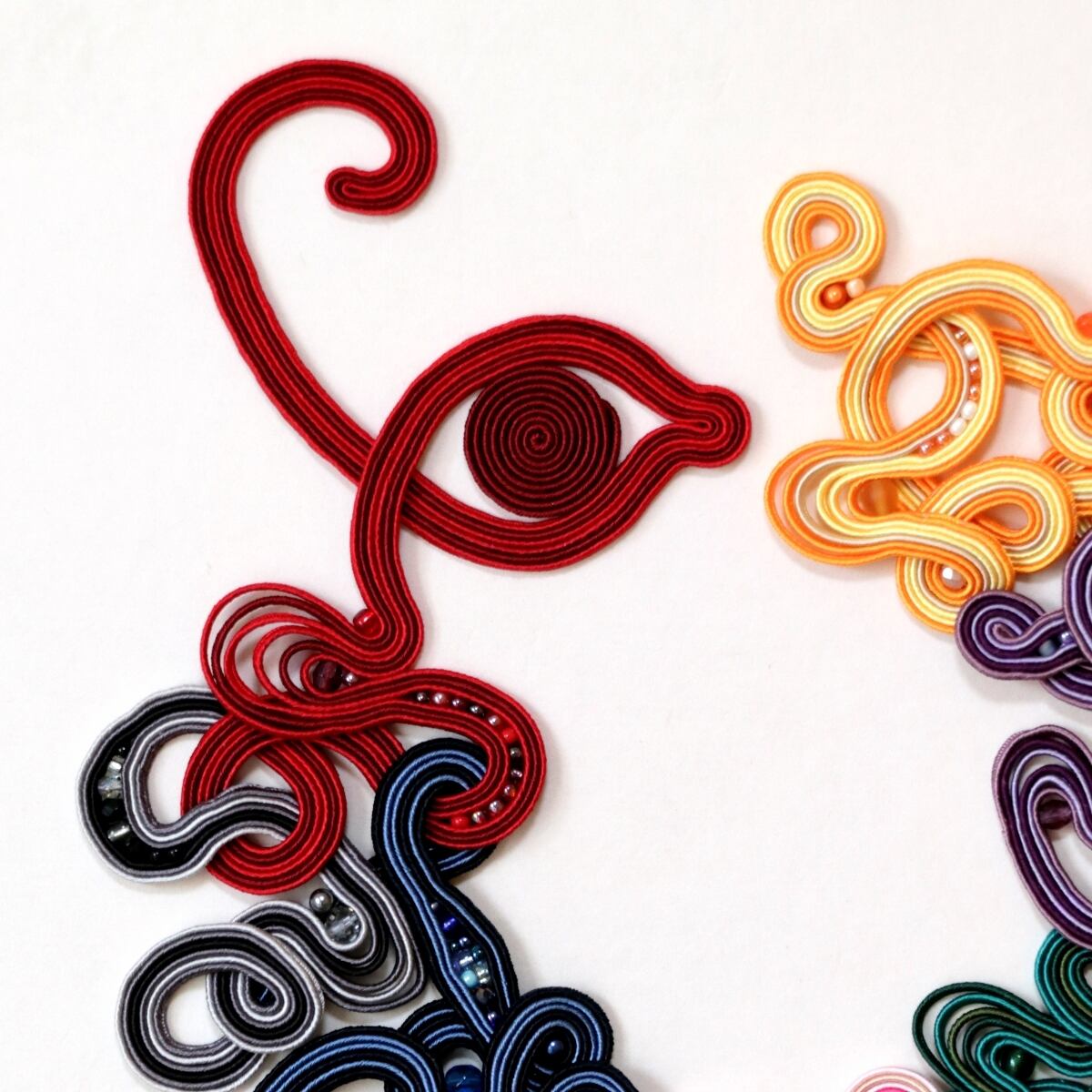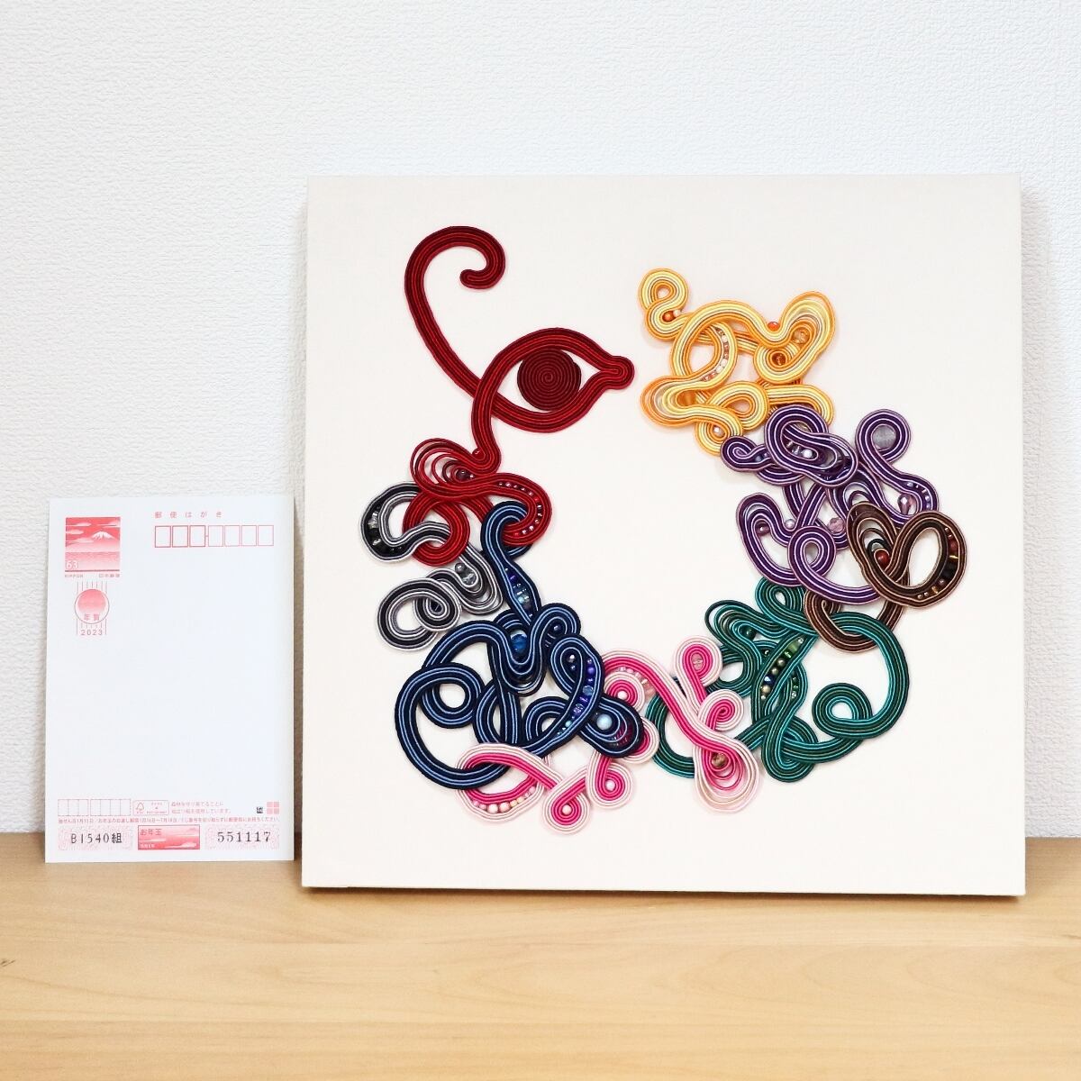 素材 レーヨン製コード、ビーズ、和紙、木製パネル