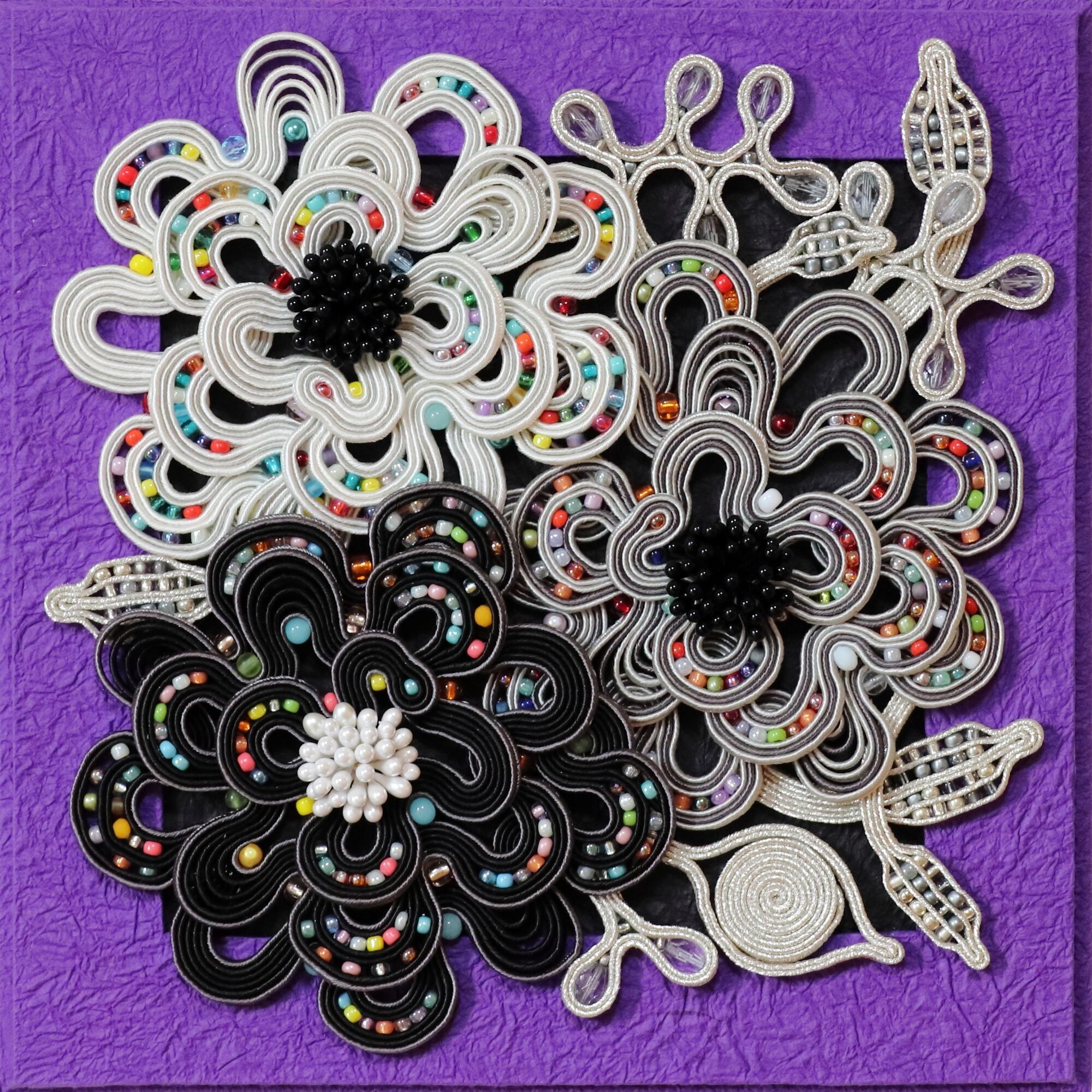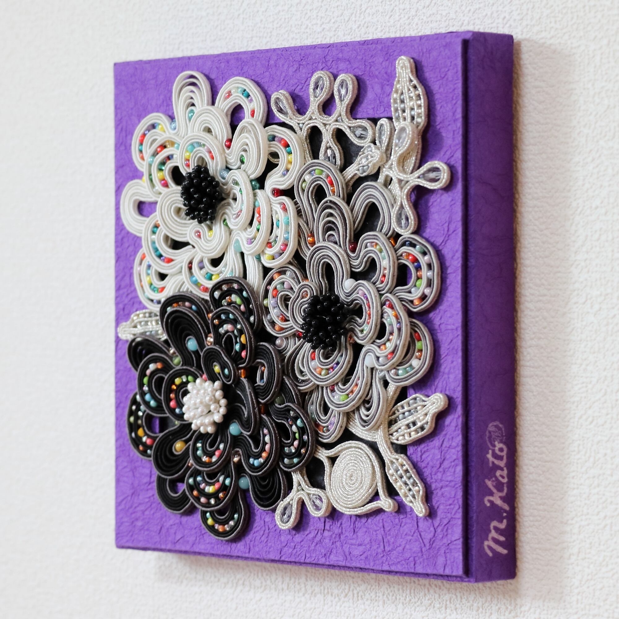 素材 レーヨン・アクリル製コード、ビーズ、糸、ペップ、厚紙、和紙、木製パネル